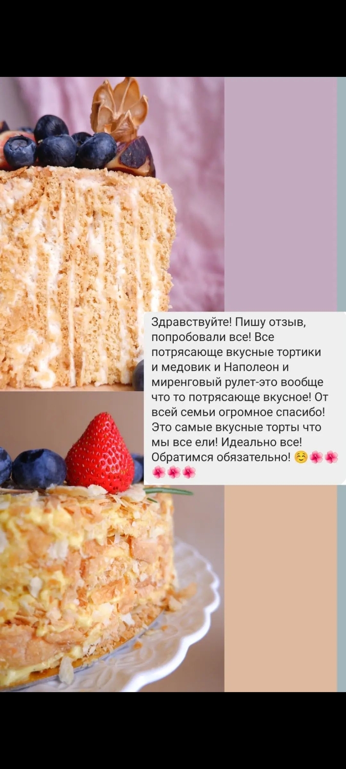 В нашем ассортименте любимые с детства классические начинки, гурманские авторские вкусы, а также торты без сахара, глютена, лактозы, веганские.